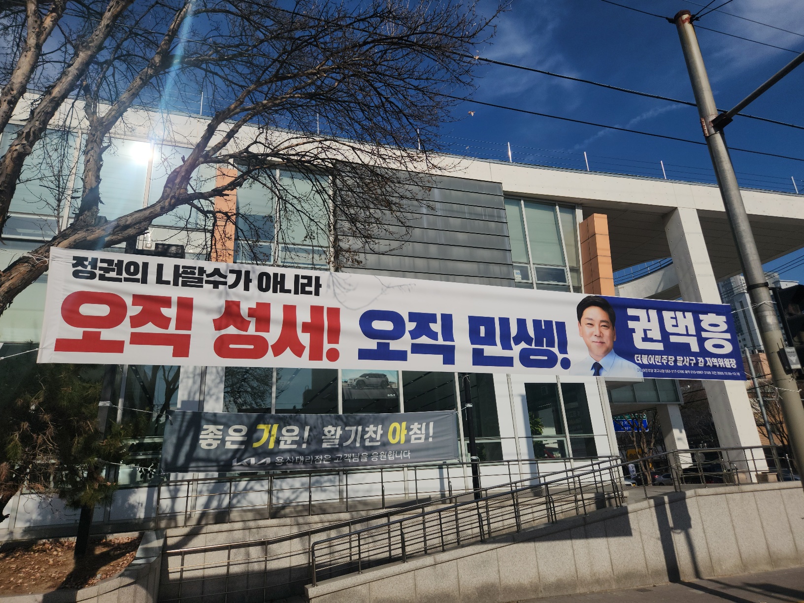 12월 10일부터 정치인의 개인 이름을 넣은 현수막 게시가 선거법상 금지됩니다. 마지막 현수막은 주민들께서 가장 관심이 많은 지역 현안으로 인사를 드렸습니다.
