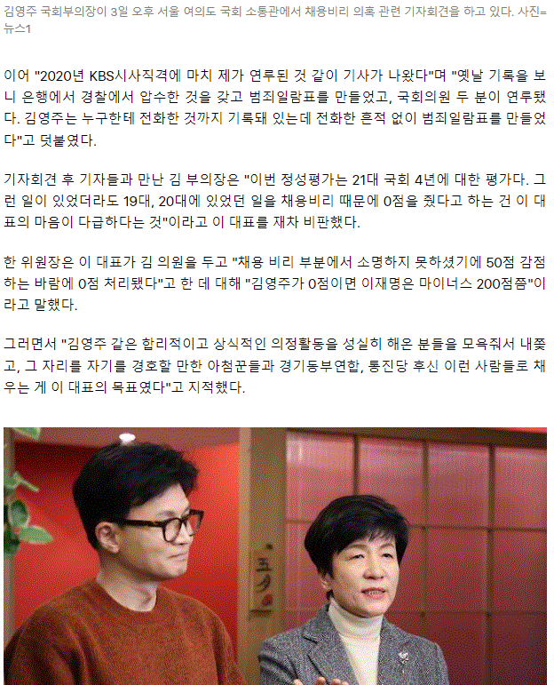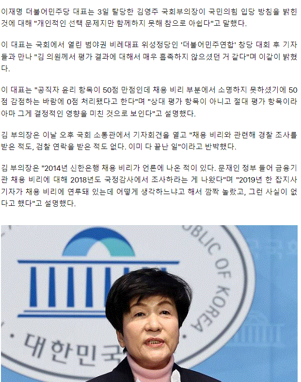 김영주 "이재명 다급했나…채용비리? 경찰·검찰 연락받은 적 없어" ㅡ 주가조작, 명품백 수수도 소환 없어