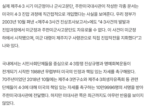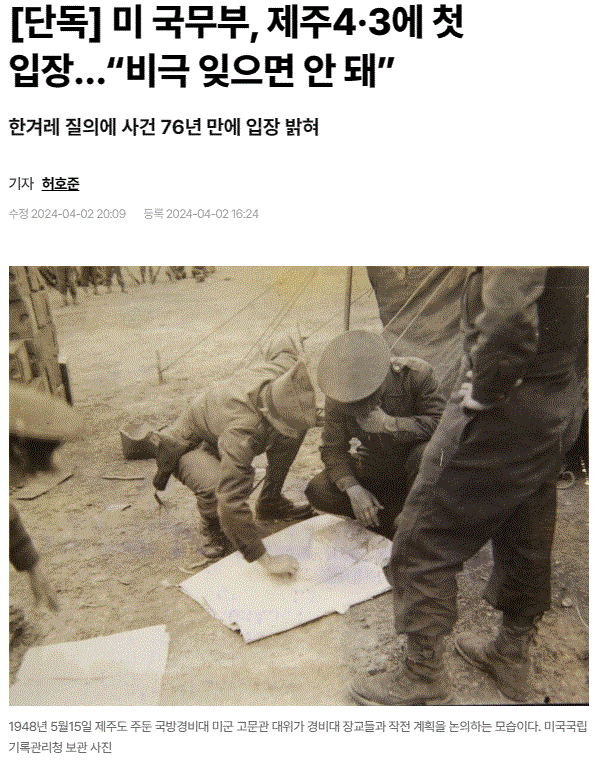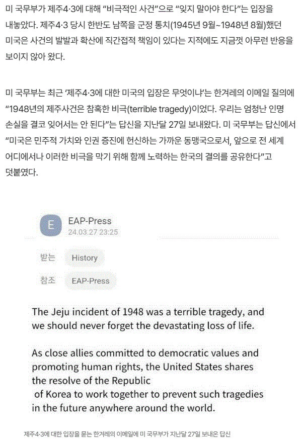 미국무부 제주 4.3에 첫 입장...비극 잊으면 안돼