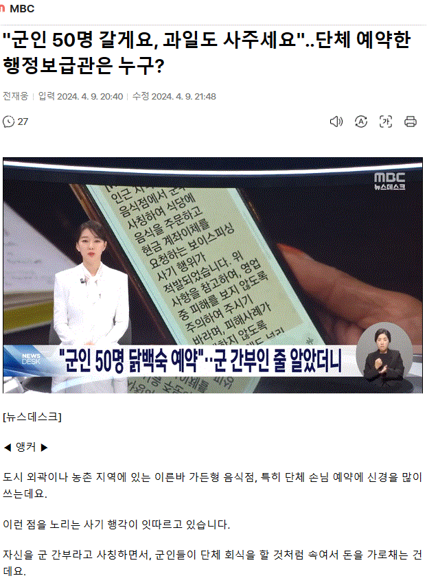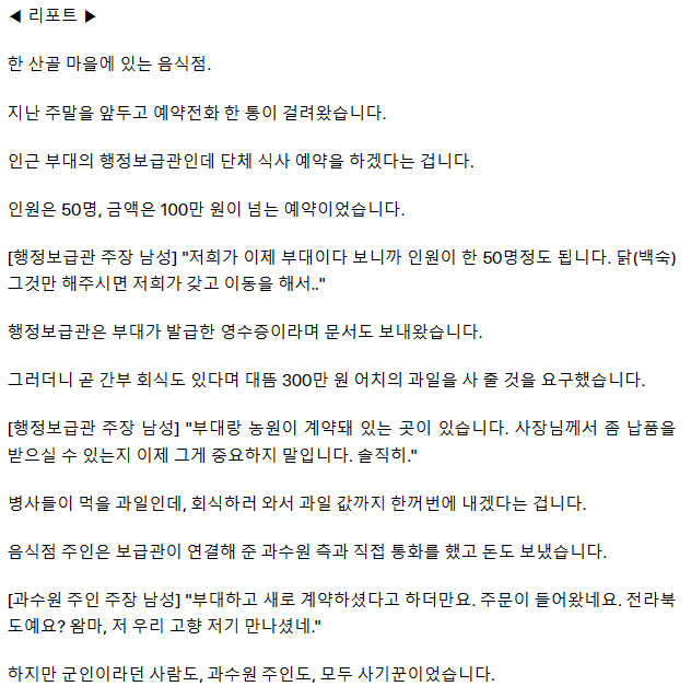"군인 50명 갈게요, 과일도 사주세요"‥단체 예약한 행정보급관은 누구?