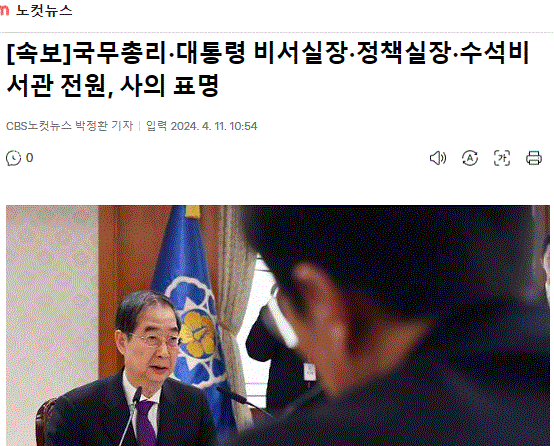 [속보] 국무총리·대통령 비서실장·정책실장·수석비서관 전원, 사의 표명