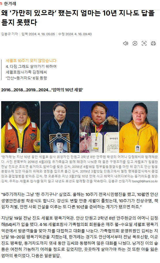 왜 ‘가만히 있으라’ 했는지 엄마는 10년 지나도 답을 듣지 못했다