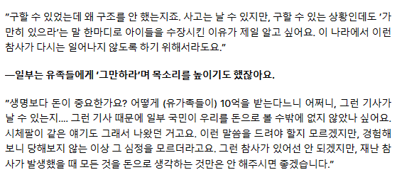 문재인 정부때 세월호참사 관련해서 어떤 일이 있었는지 못 보셨나요??? 어떤 과정이 있었는지! 봤다면 이런 글을 못 쓸건데 참 무관심하신 분 같네요. 이제라도 관심을 가져주세요. 지난 10년간 어떻게 지나왔는지도 알아보시고요...