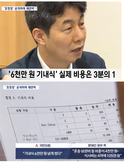 "6천만 원 호화 기내식"이라더니‥"기내식 비용 3분의 1" 전면 반박