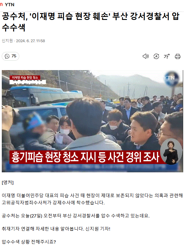 공수처, '이재명 피습 현장 훼손' 부산 강서경찰서 압수수색