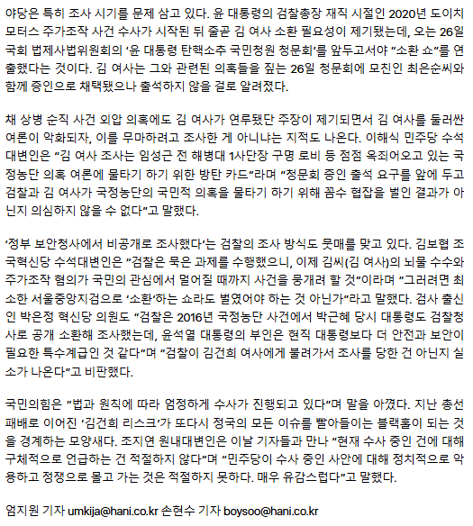 야 “‘김건희 검찰청 소환쇼’조차 안 해…특검 필요성 더 커졌다”