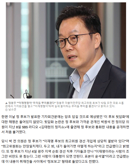 정봉주가 명팔이(이재명 지지하는 파리때)숙청 한다고 하는데
