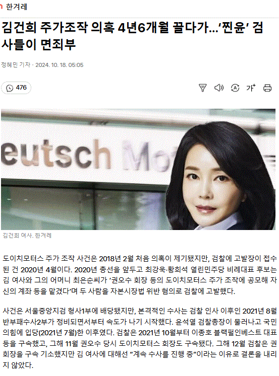 김건희 주가조작 의혹 4년 6개월 끌다가… ‘찐윤’ 검사들이 면죄부