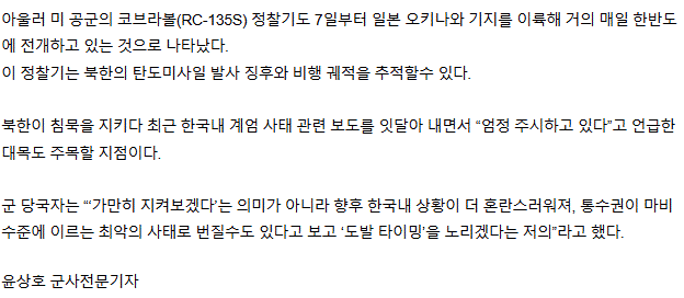 미군 정찰기가 7일 연속 출동‥ '북한 미사일 대신 한국군 감시'하러?