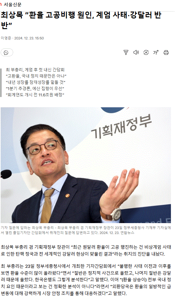 최상목 “환율 고공비행 원인, 계엄 사태·강달러 반반”