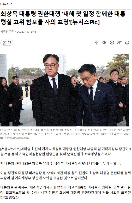 헌법재판관 2명만 임명 차후에 1명도 임명할 것으로 보이는데 국무위원 중 그래도 최상목이 제일 상식적이네요 나머지 인간들은 왜 임명했냐고 따지고 사표 내겠다고 하는데 정말 인간들이 아니네요 저런 인간들이 국무위원으로 나라를 이끌고 있었으니 나라가 엉망이지요 최상목도 이렇게 끌다가는 환율도 1500원 가고 나라 망하겠다 싶어서 내린 결정인데 나머지 인간들은 나라 걱정은 없고 룬석열 복귀를 바라고 있었다니 어처구니 없는 인간들 이네요 ㅉ