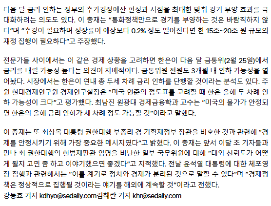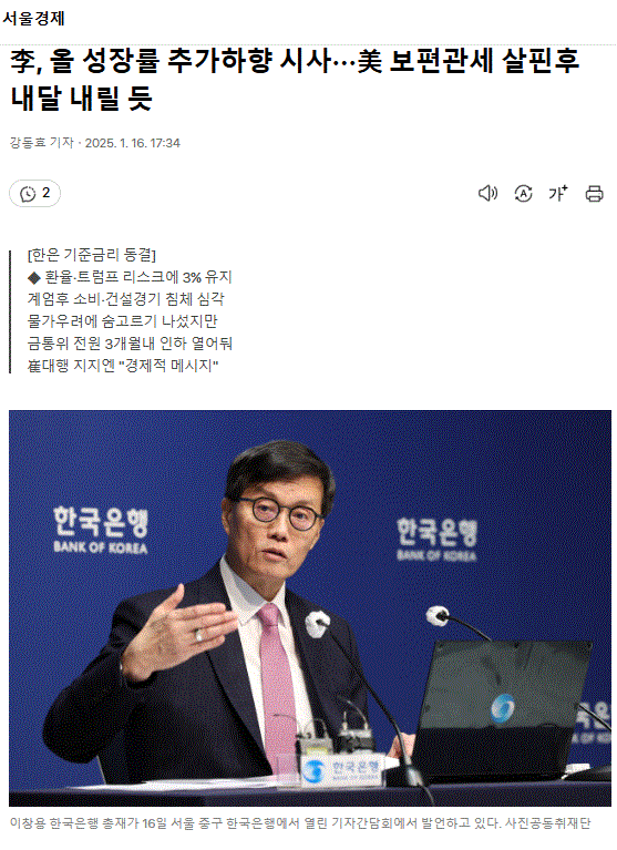李, 올 성장률 추가하향 시사··· 美 보편관세 살핀 후 내달 내릴 듯