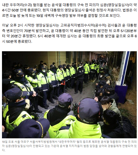 '내란 혐의' 윤석열 대통령, 구속심사 4시간 50분 만에 종료
