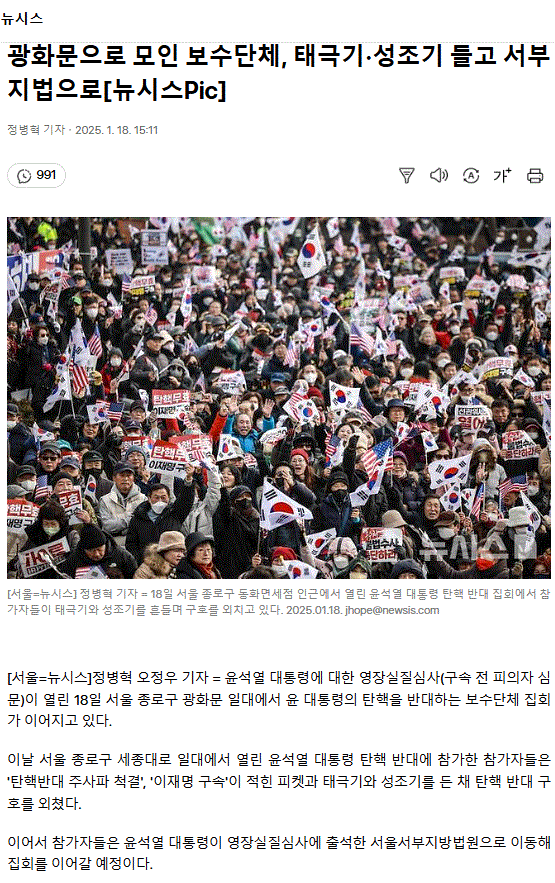 광화문으로 모인 보수단체, 태극기·성조기 들고 서부지법으로[뉴시스Pic] ㅡ 성조기는 왜 드냐