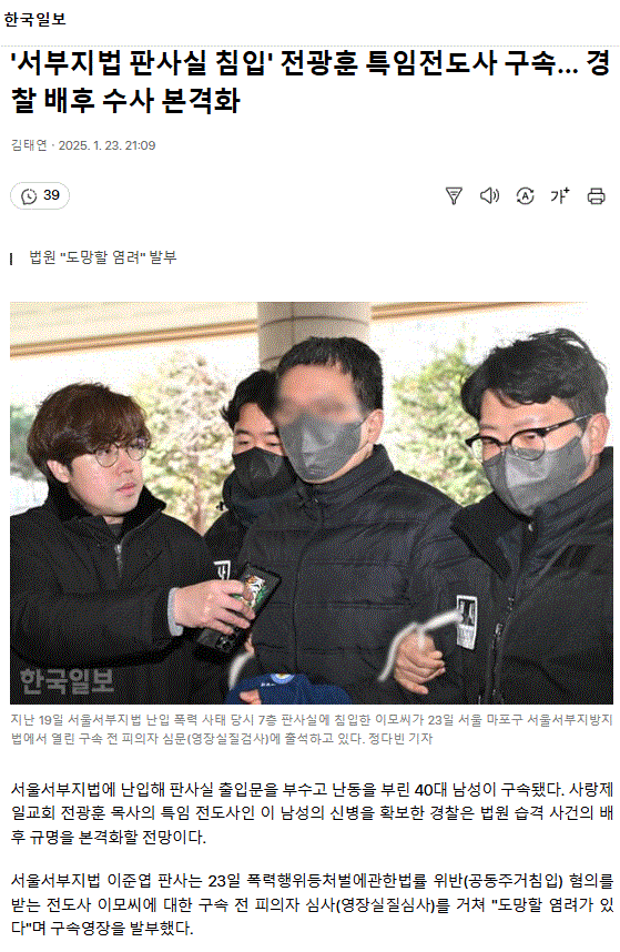 '서부지법 판사실 침입' 전광훈 특임전도사 구속... 경찰 배후 수사 본격화