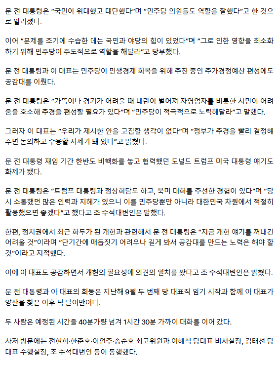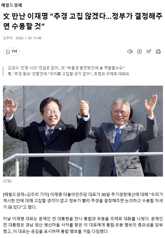 文 만난 이재명 “추경 고집 않겠다… 정부가 결정해주면 수용할 것”