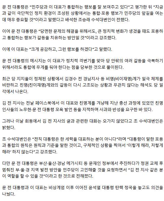 정청래는 친문이니 협조 하지 않을겁니다. 이재명대통령이 힘들어야 친문한테 손 벌릴거라고 생각하구 있어 이재명대통령이 잘나가는것 별루 좋아하지 않습니다.외로운 이재영대통령님. 우리 당원들이 지켜야 합니다.친문들은 제발 자중하구 좀 찌그려져 있기를.근데 무신 문재인은 유트브 한다고? 이게 말이가 글이가.
