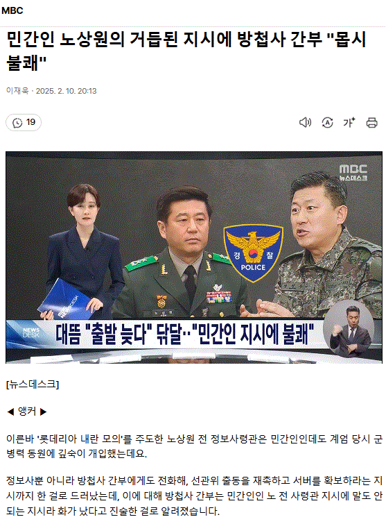 민간인 노상원의 거듭된 지시에 방첩사 간부 "몹시 불쾌"