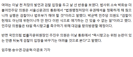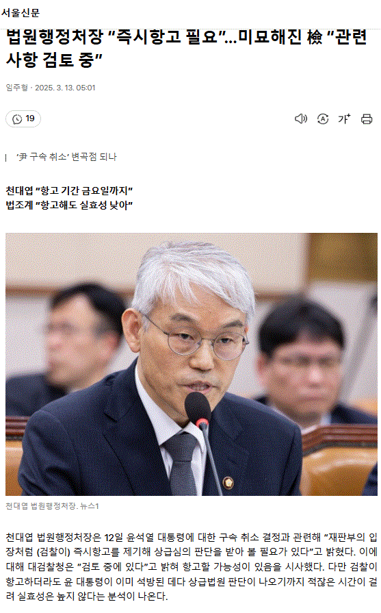 법원행정처장 “즉시항고 필요”… 미묘해진 檢 “관련사항 검토 중”