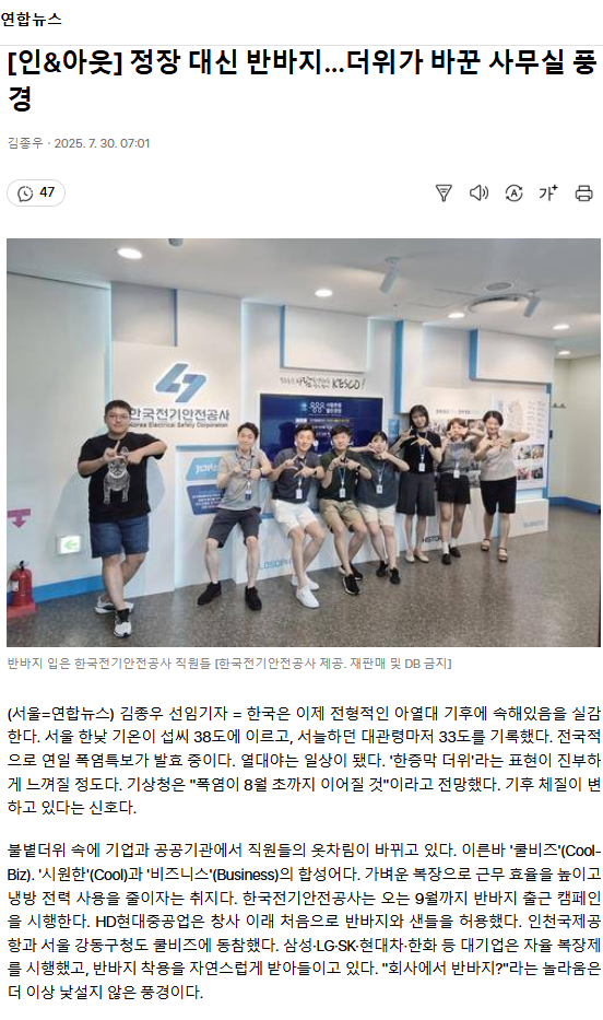 [인&아웃] 정장 대신 반바지… 더위가 바꾼 사무실 풍경