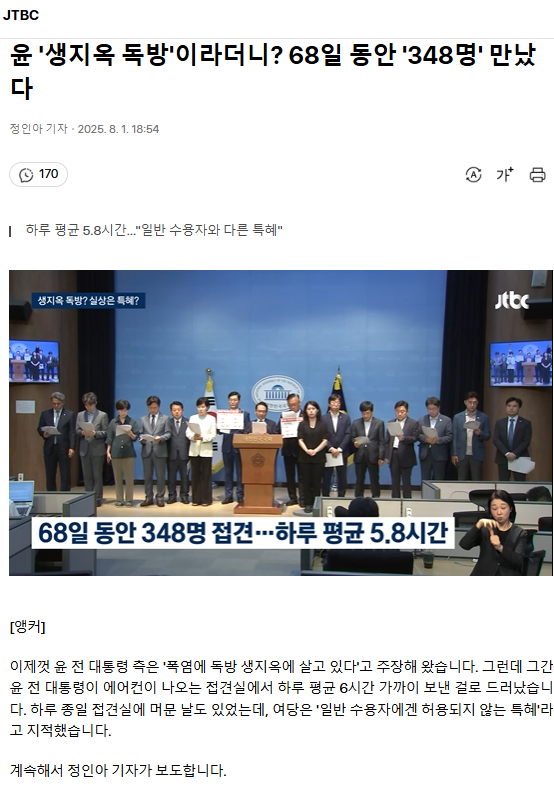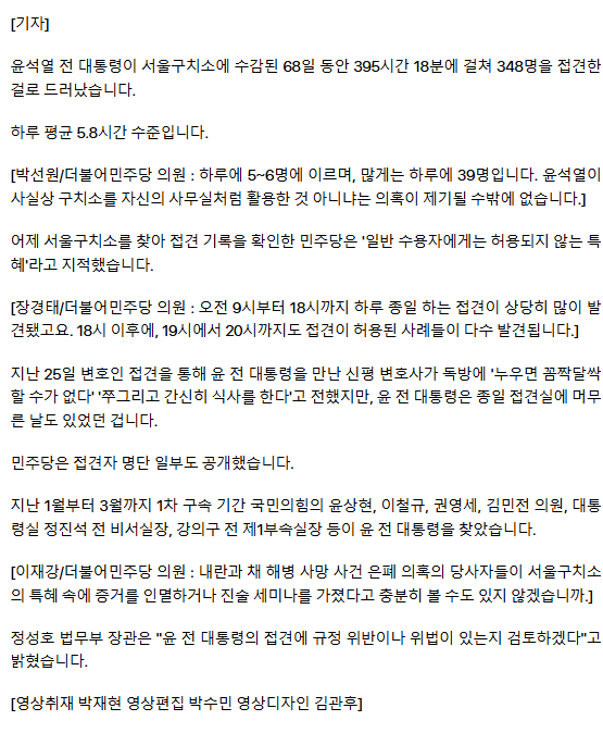 윤 '생지옥 독방'이라더니? 68일 동안 '348명' 만났다