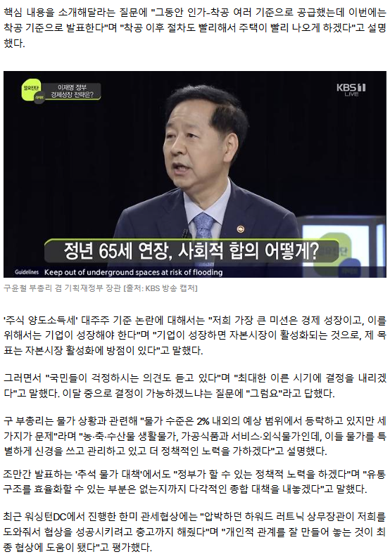 구윤철 "대주주 양도세, 이달 결정… 국가채무 우려 잘 알고 있다" ㅡ 양도세 10억으로 해야