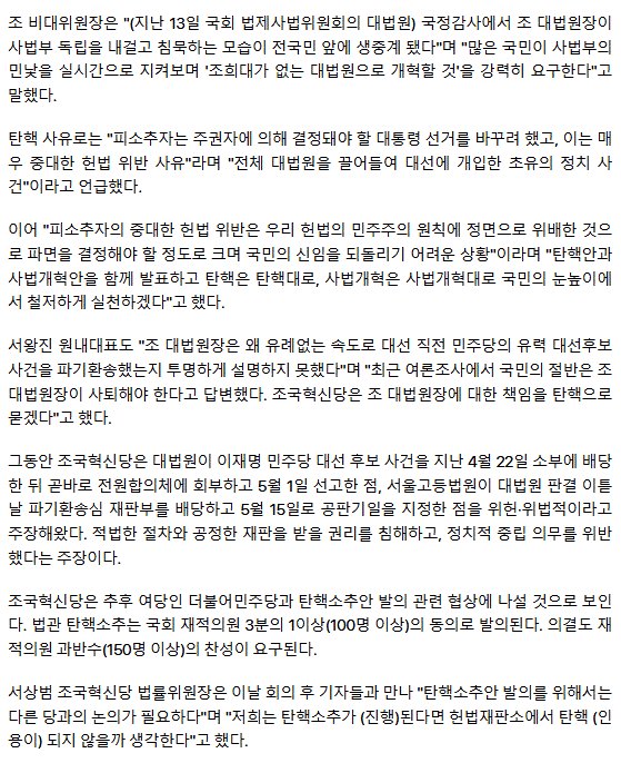 말로는 다 쉽습니다 조희대 처리 하는 게 쉽나요? 사법부 개혁하는 게 쉽나요? 그렇게 하기 위해서 빌드업 하고 있고 법사위도 당대표도 열심히 하고 있습니다 비난 보다는 응원을 해주면 더 잘 하지 않을까요 비난은 박성재 기각한 사법부와 국힘에게 하는 게 좋을 것 같은데요