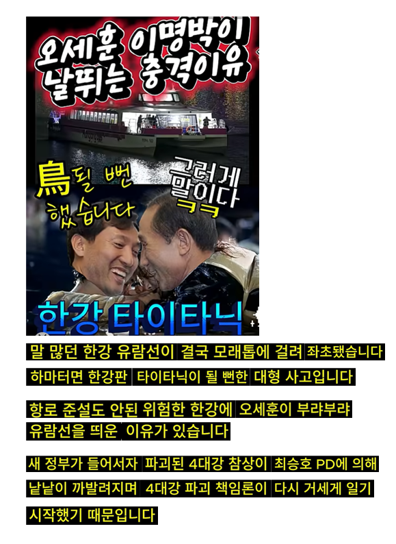 오세훈과 이명박이 갑자기 날뛰는 충격 이유 ㅡ 한강버스 띄운 오세훈.