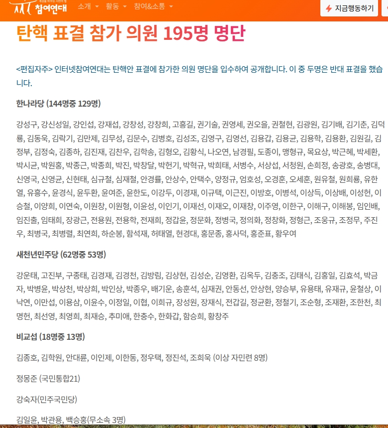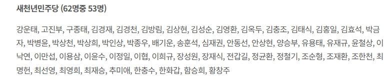 노무현대통령 탄핵에 참여하였던 새천년민주당 53명 명단-참여연대 자료