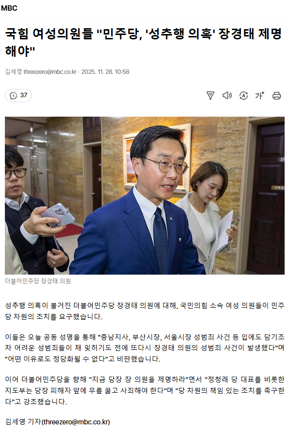국힘 여성의원들 "민주당, '성추행 의혹' 장경태 제명해야" ㅡ 미친거아냐