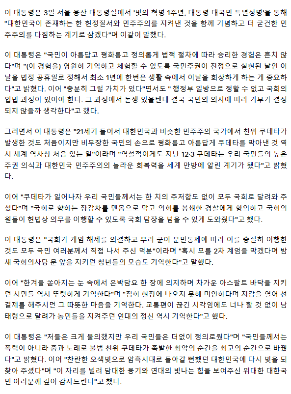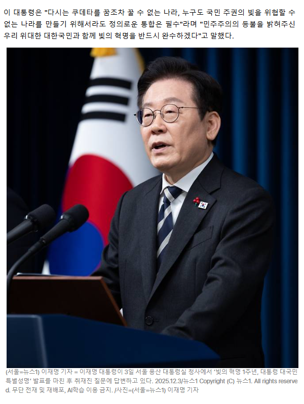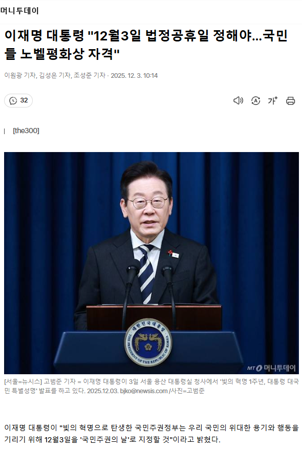 이재명 대통령 "12월3일 법정공휴일 정해야… 국민들 노벨평화상 자격"ㅡ 국민주권의날