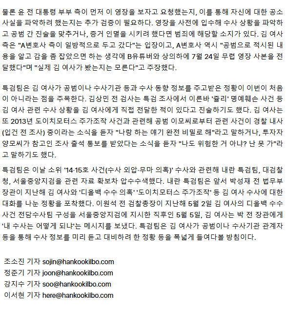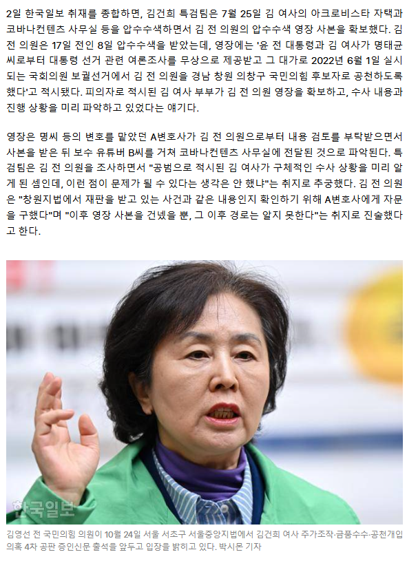[단독] 코바나컨텐츠에서 발견된 김영선 압색 영장… 김건희, 수사 상황 어디까지 챙겼나 ㅡ 왜 압색영장이 거기서 나와