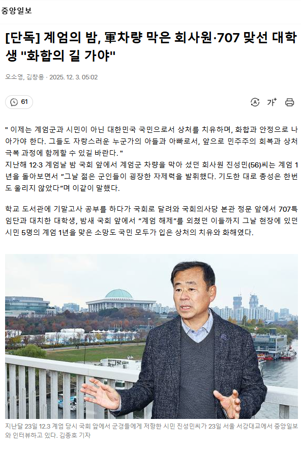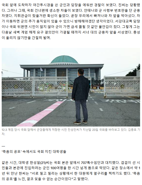 [단독] 계엄의 밤, 軍차량 막은 회사원·707 맞선 대학생 "화합의 길 가야"