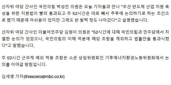 '주 52시간 예외' 빠진 반도체특별법, '여야 합의' 산자위 통과