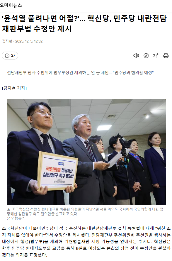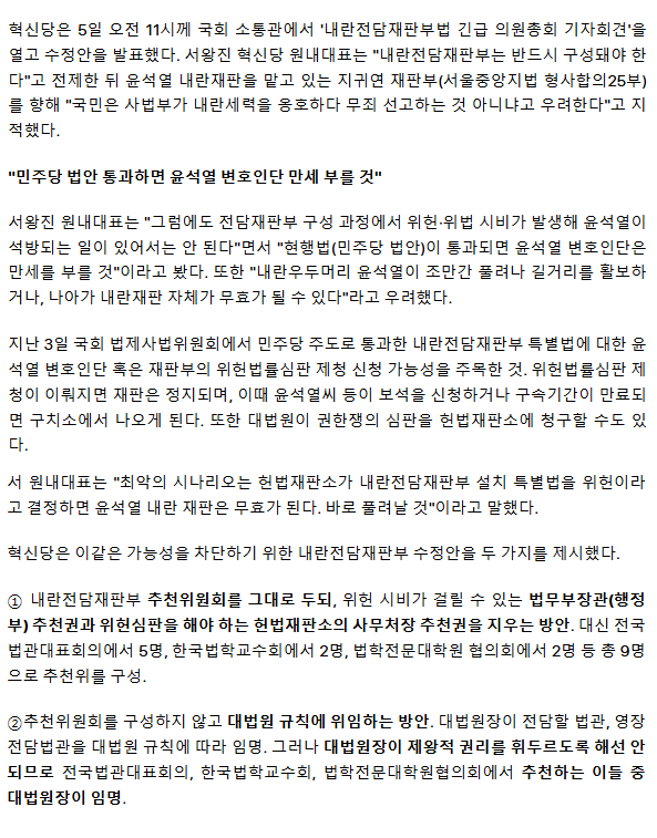'윤석열 풀려나면 어쩔?'... 혁신당, 민주당 내란전담재판부법 수정안 제시