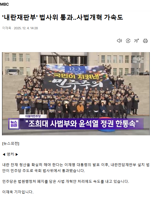 '내란재판부' 법사위 통과‥ 사법개혁 가속도