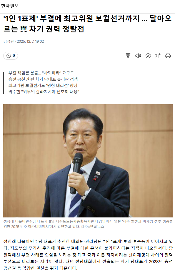 '1인 1표제' 부결에 최고위원 보궐선거까지 … 달아오르는 與 차기 권력 쟁탈전