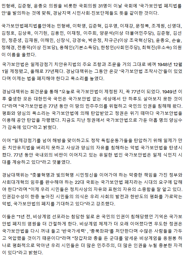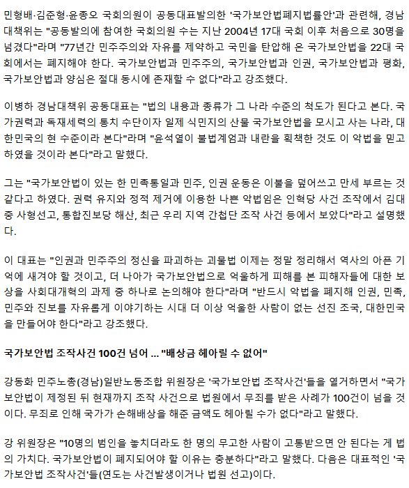 "보안법 77년, 조작사건 100건 넘고 배상액 헤아릴 수 없어"