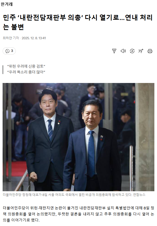 독재로 일을 처리하니 당원간에 분열이 일어나고 당원과 중앙위 사이에서도 분열이 일어나고 민주당이 똘똘 뭉쳐서 내란척결에 힘을 쏟아야 할 시기에 숙의를 거쳐서 천천히 하면 될 일로 당을 분열시키는 정청래딴대는 무능하고 무능한 대표입니다