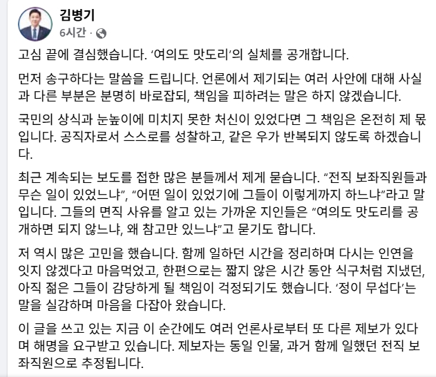 국회의원들은 보좌진들과 공적인 업무로만 엮이셔야지 개인적이고 사사로운 일까지
