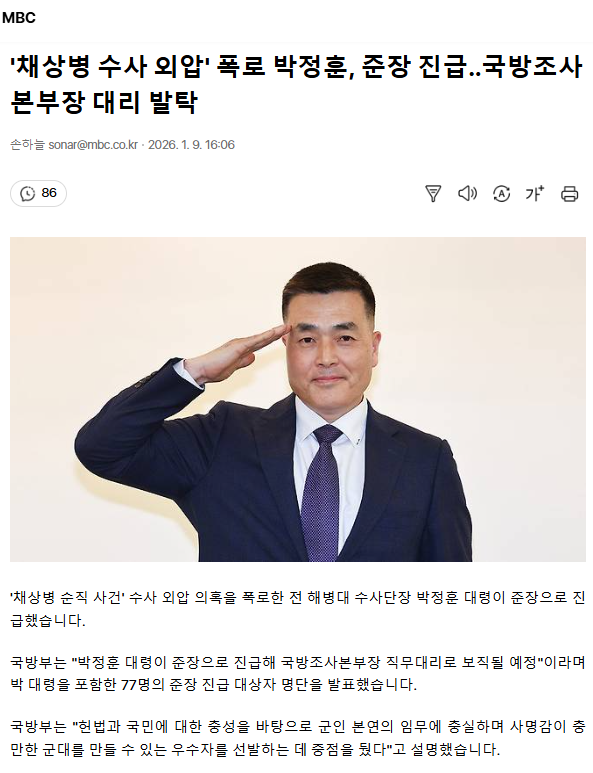 '채상병 수사 외압' 폭로 박정훈, 준장 진급‥국방조사본부장 대리 발탁