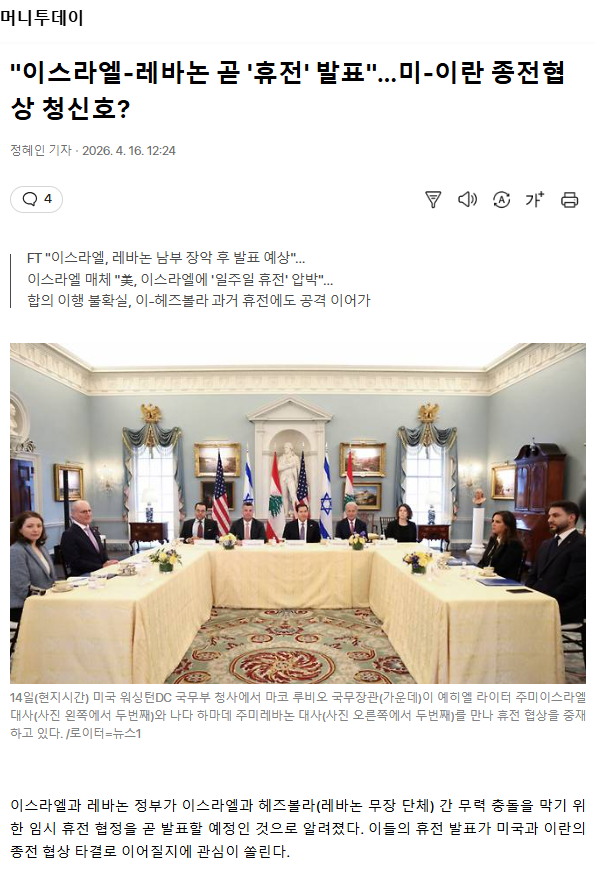 "이스라엘-레바논 곧 '휴전' 발표"… 미-이란 종전협상 청신호?