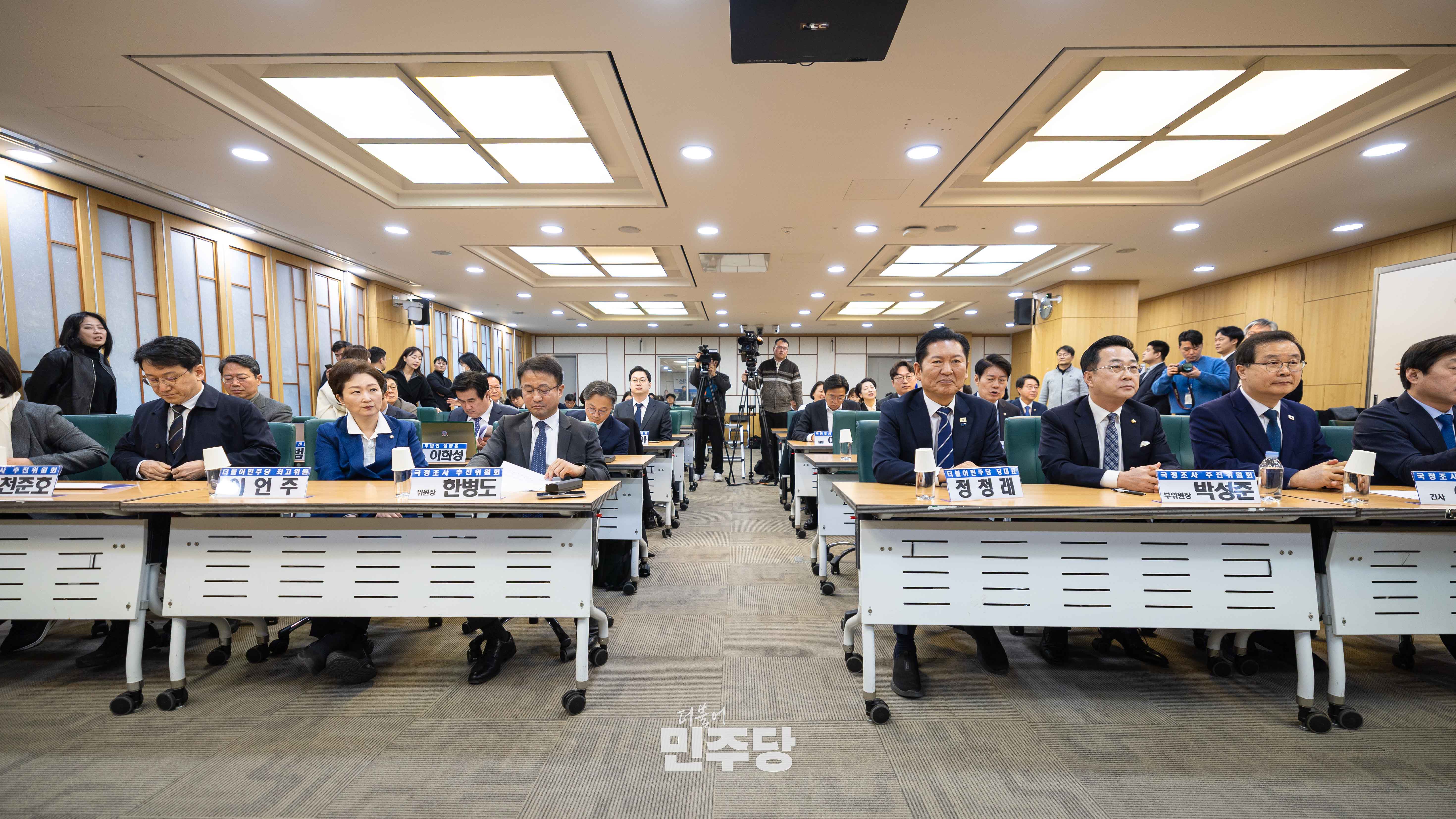 정청래 당대표가 2026.03.09.(월) 국회 의원회관 제3세미나실에서 진행된 조작기소 진상규명 및 공소취소를 위한 국정조사 추진 정책토론회에 참석하여 기념촬영을 하고 있다.