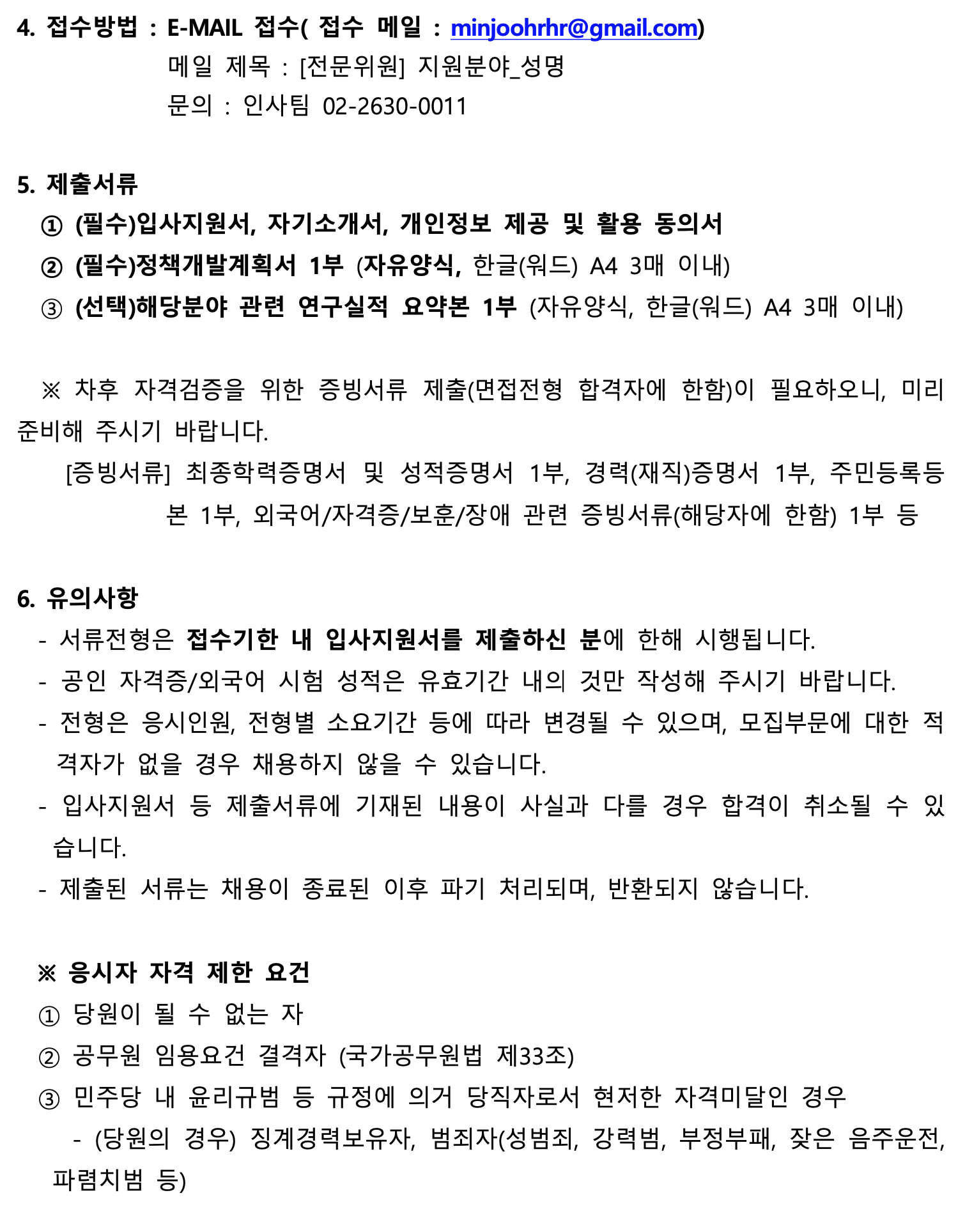 더불어민주당 전문위원(계약직) 채용 공고_정무위원회(금융)