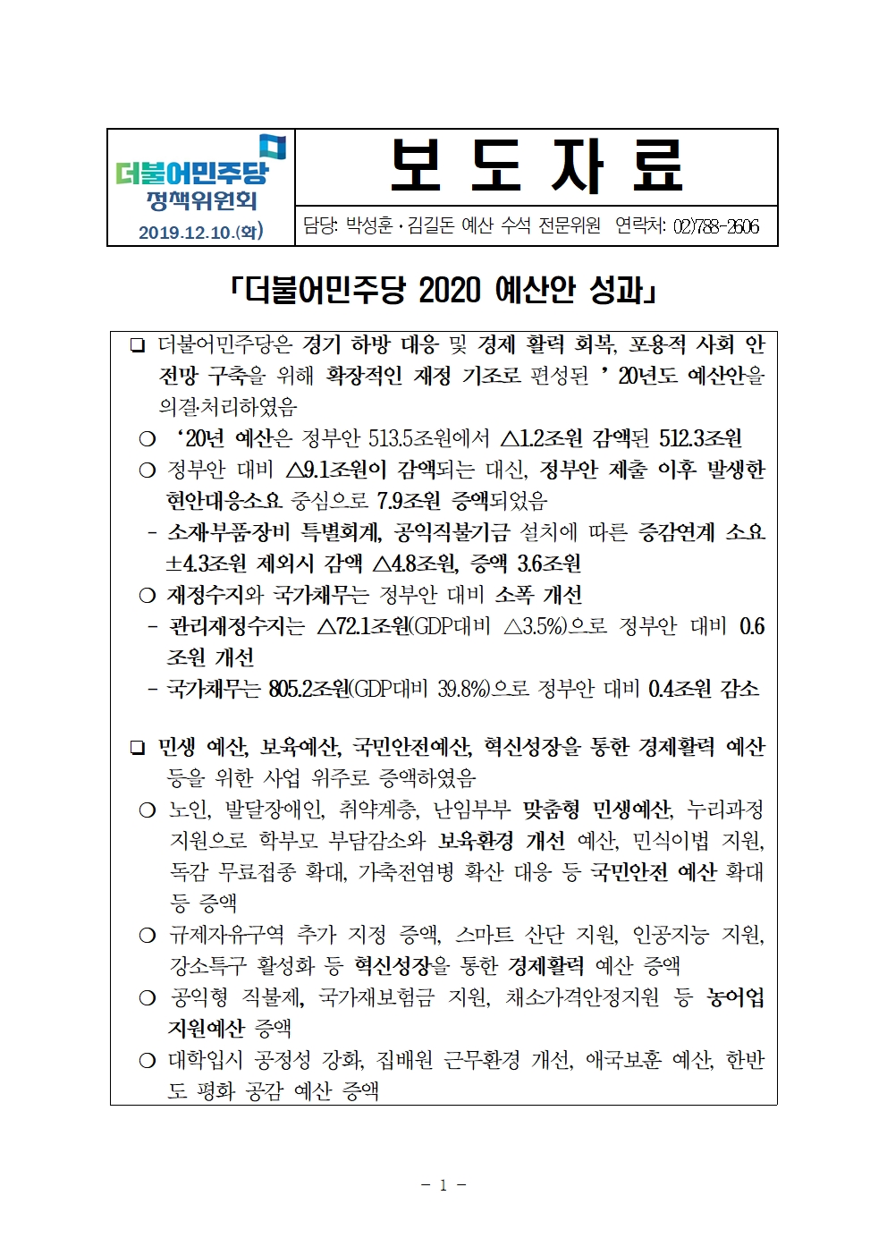 (보도자료)191210_더불어민주당_2020예산성과.hwp