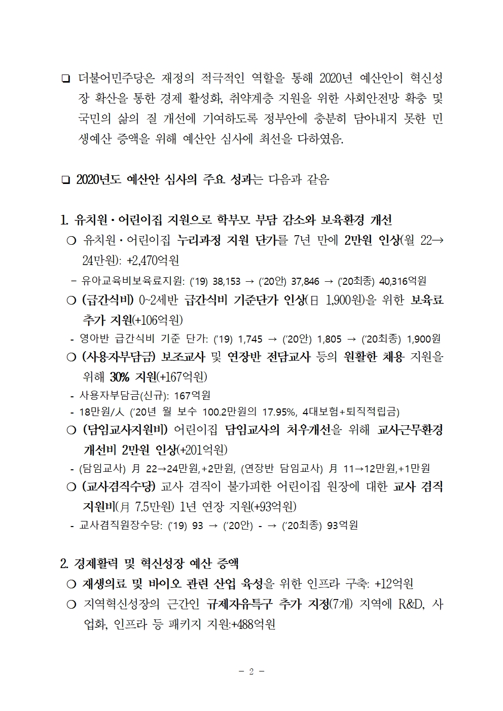 [보도자료] 2020 예산안 성과