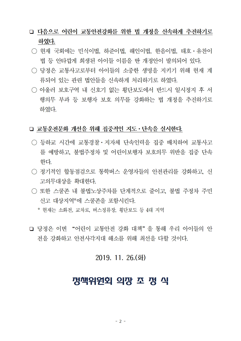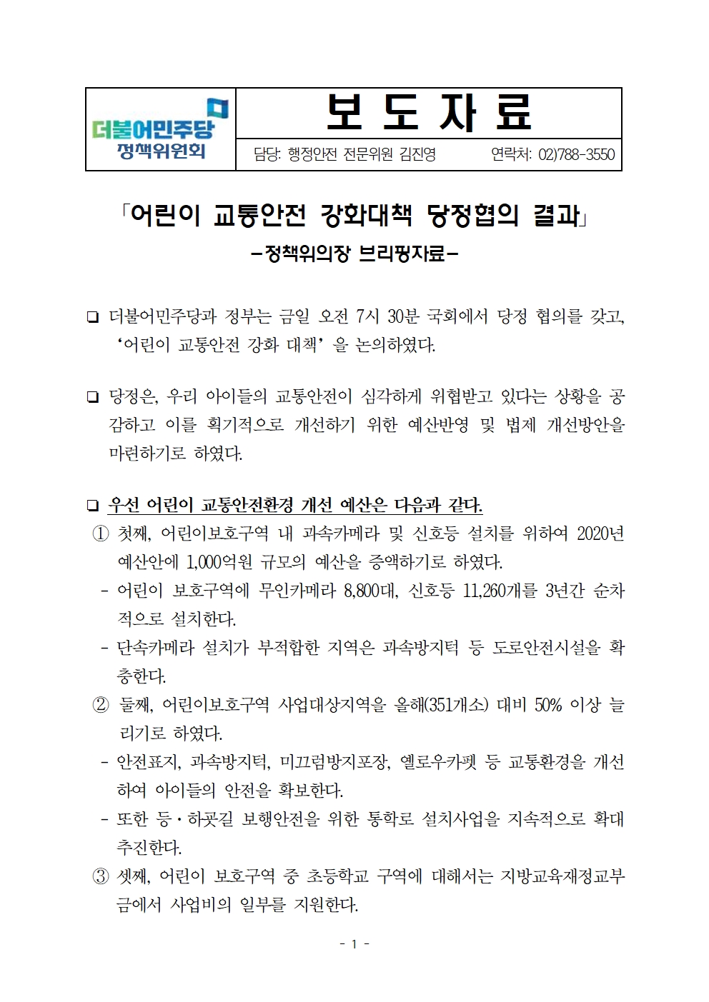 [보도자료] 어린이 교통안전 강화대책 당정협의 결과