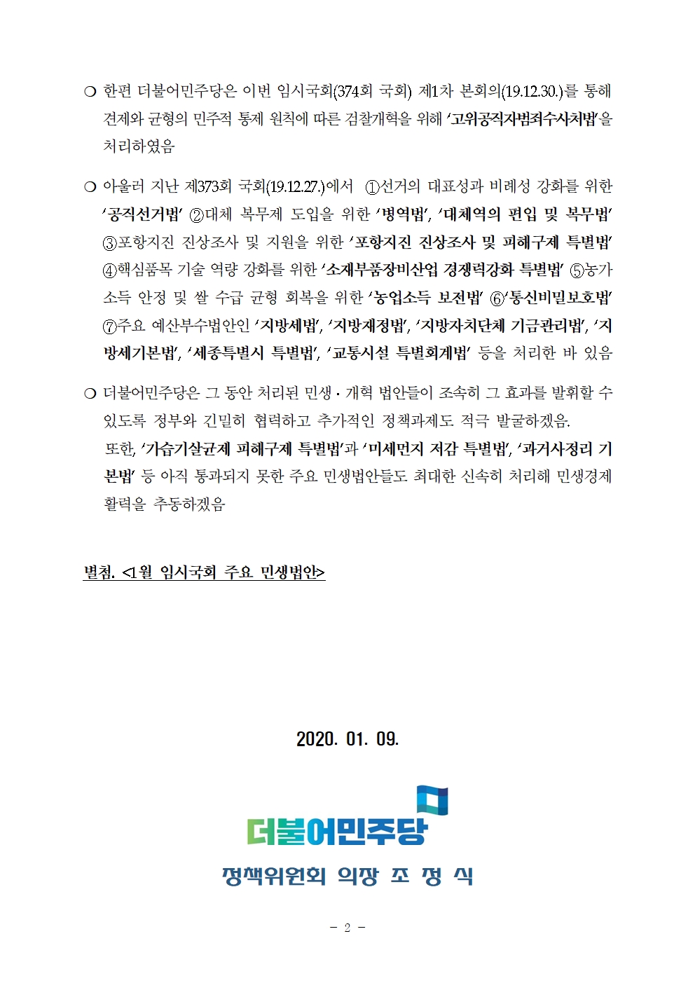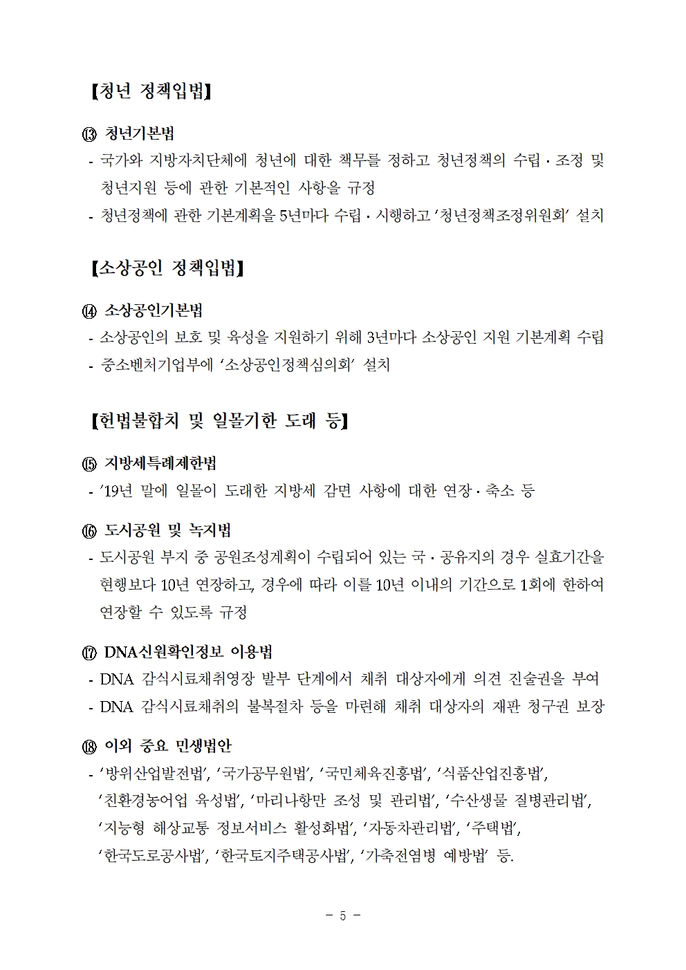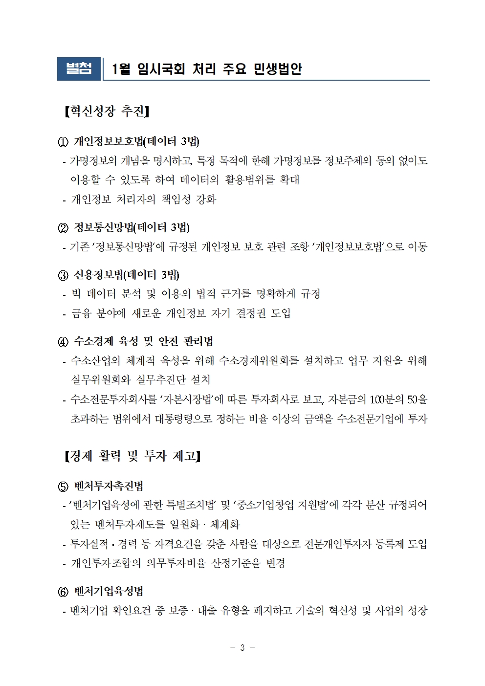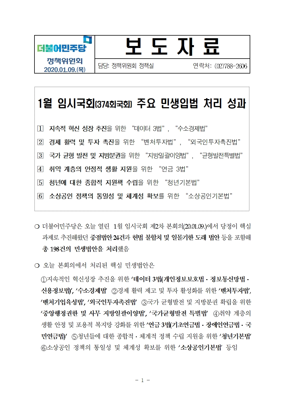 1월 임시국회(374회국회) 주요 민생입법 처리 성과