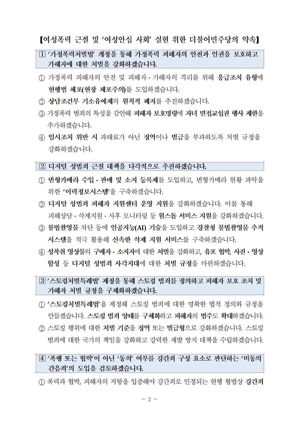 [총선 공약] “여성폭력 OUT! 여성이 안전한 사회를 만들겠습니다!” - 국민안전 부문