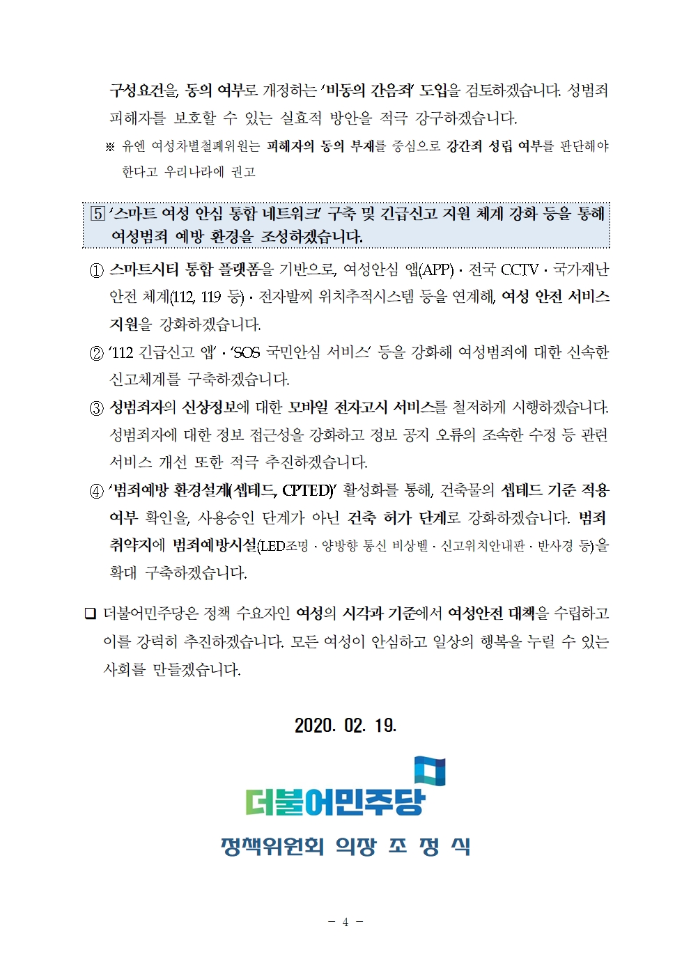 200219_보도자료(정책위)_여성안전_총선공약.hwp